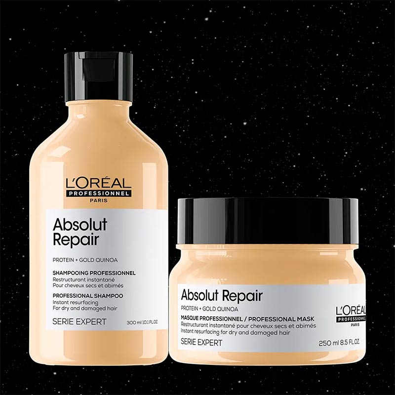 • Mascarilla reparadora Absolut Repair (250 ml): Tratamiento intensivo con textura rica que nutre profundamente, repara daños visibles y deja un brillo espectacular.